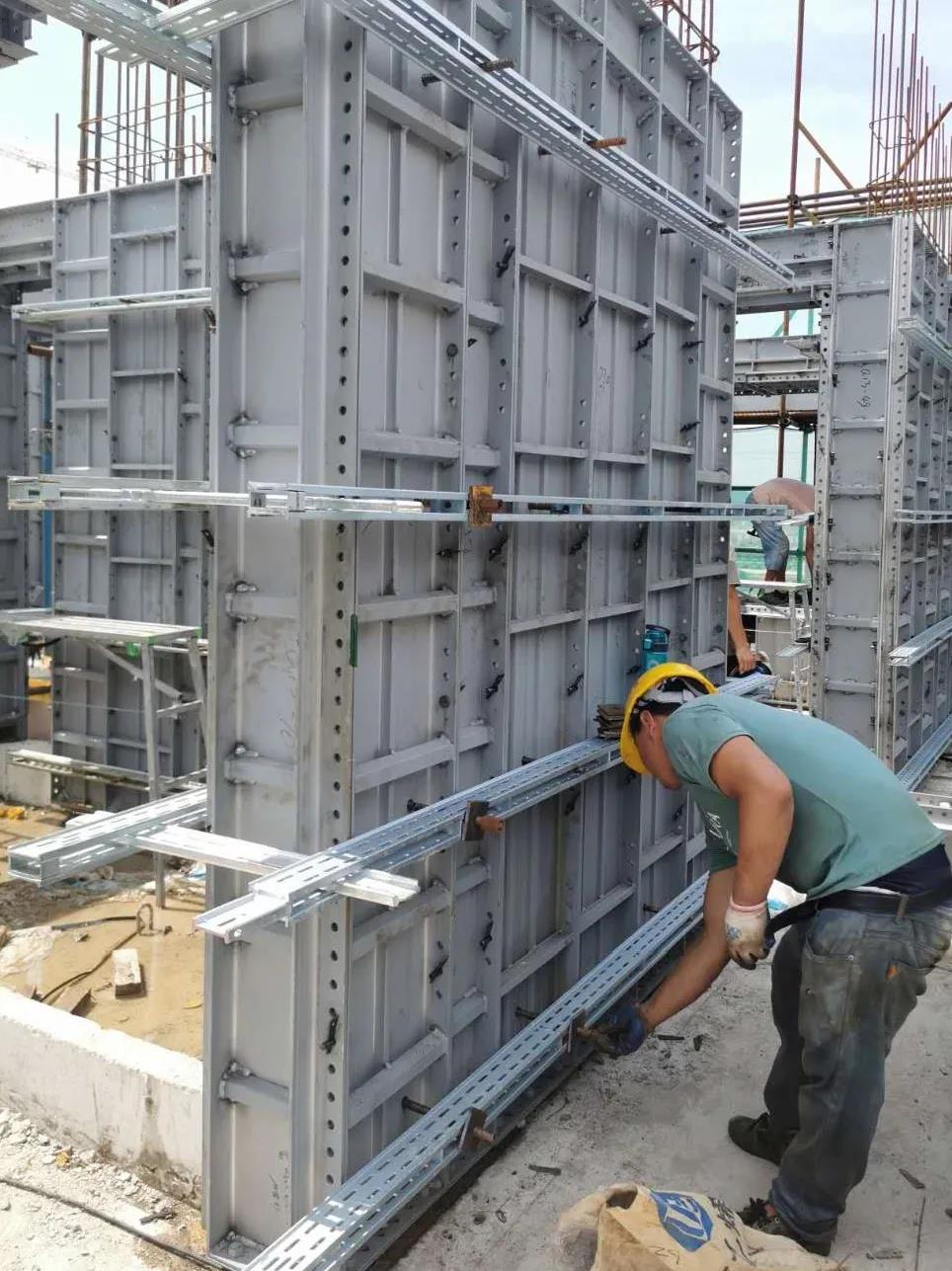 在建筑行業(yè)新發(fā)展趨勢(shì)下,鋁模板憑借其高強(qiáng)度與整體性迅速的發(fā)展和推廣,浙江嘉興市利富通新材料有限公司項(xiàng)目由浙江寶業(yè)建設(shè)有限公司承建,選擇采用方圓墻固件搭配鋁模板使用,成型精度更高,表面效果好,深受建設(shè)單位青睞。 項(xiàng)目總投資 6200 萬(wàn)元,總建筑面積19264 m2,層高三米采用四道加固,方圓墻固件靈活的插接方法,與鋁模板完美搭配,產(chǎn)品由工廠自動(dòng)焊接成型,強(qiáng)度更高,作為主背楞搭配使用能有效保證加固強(qiáng)度。 技術(shù)部根據(jù)施工圖紙作為設(shè)計(jì)依據(jù)進(jìn)行配模設(shè)計(jì),深化處理墻垛、飄窗等二次結(jié)構(gòu),并詳細(xì)標(biāo)注加固范圍。針對(duì)墻體連續(xù)轉(zhuǎn)角交叉位置不能使用穿墻絲的問(wèn)題,設(shè)計(jì)人員提出采用斜支撐方案,以保證對(duì)拉強(qiáng)度。 拆模后,加固成型效果獲得合作方的一致好評(píng),陰陽(yáng)角位置成型標(biāo)準(zhǔn),無(wú)跑漿漏漿現(xiàn)象,墻面垂直度遠(yuǎn)超驗(yàn)收標(biāo)準(zhǔn)。