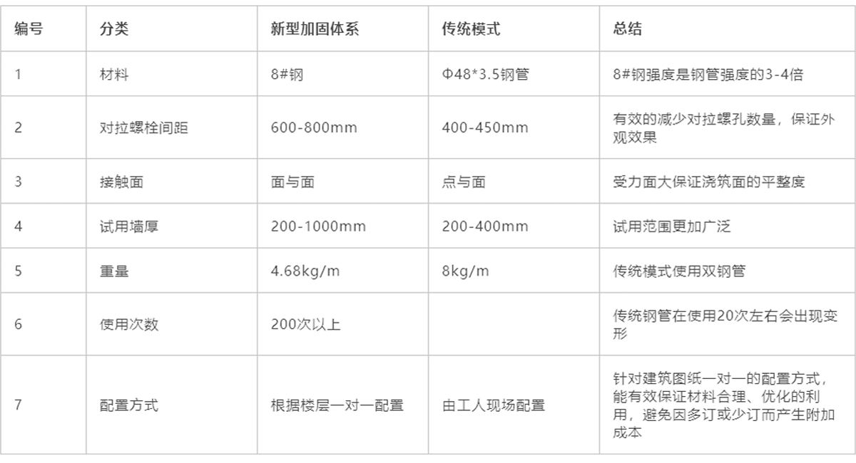 對(duì)拉螺栓桿橫向間距可達(dá)600-800mm,可有效減少近一半的拉桿數(shù)量。