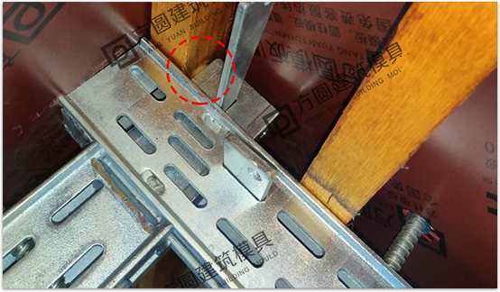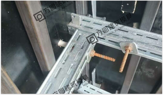 使用方法:合模后安裝豎楞,穿對(duì)拉螺栓,然后將直陰角件水平方穿入對(duì)拉螺栓中,然后再安裝其他構(gòu)件。