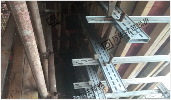 使用方法:合模后安裝豎楞,穿對(duì)拉螺栓,然后將雙層直板水平方穿入對(duì)拉螺栓中,最后在墻體端部雙層直板中間插入單層板,斜鐵緊固。