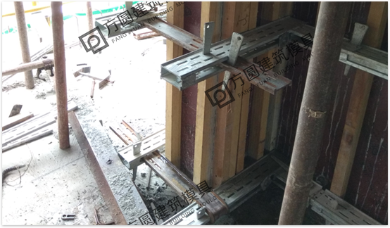 5、安放內(nèi)撐及穿墻管、穿墻螺栓:根據(jù)墻模板開鑿的孔,插入穿墻管及穿墻螺栓。