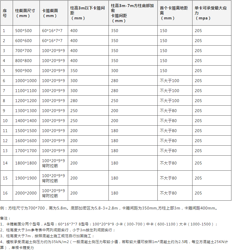 新型方柱加固件是對應(yīng)固定方柱模板的專用定制型配套卡箍,外形有對應(yīng)四個(gè)彎頭單片鍍鋅卡板組成,卡板一端設(shè)置為折彎結(jié)構(gòu),每條卡板上沿長度方向設(shè)有若干相同間隔的固定孔,楔形固定銷穿過通孔和固定孔將限位套和卡板固定,形成安裝拆卸方便的方柱模板緊固件。專業(yè)應(yīng)用于建筑施工中打造方柱柱體的新型緊固件,其適用于方柱柱體在定制方柱模板及普通模板(含木枋)支模后的快速加固。